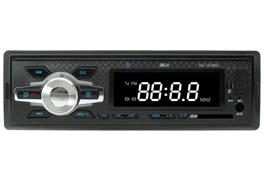 Ресивер типоразмера 1DIN из линейки новых магнитол от ACV. Он проигрывает файлы MP3 и считывает информацию через USB-интерфейс или с карт памяти SD. Также имеется Bluetooth и радиотюнер, а благодаря многоцветной подсветке устройство смотрится в салоне весьма привлекательно.